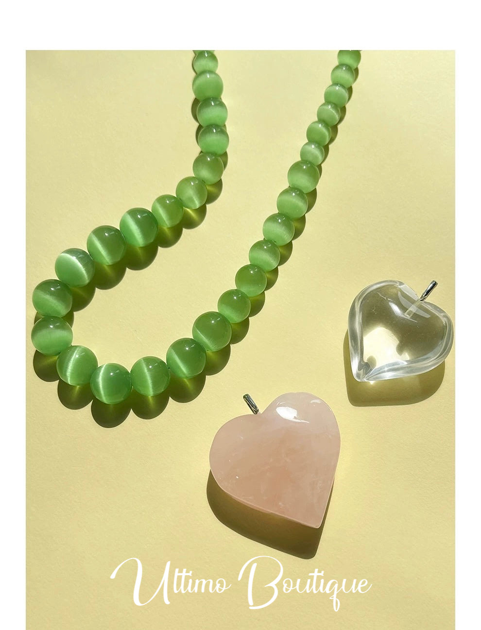 Embrace the vibrant and passionate spirit of summer with our Summer Vibes Lake Green Cat's Eye Necklace. This exquisite piece features stunning green cat's eye stones, capturing the essence of a serene lake bathed in summer sunlight.